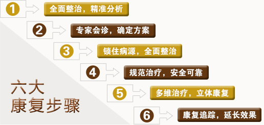第一步精确诊断,查明疾病,再锁定发病源;第二步根据患者切实情况,制定治疗方案,不同阶段进行各有侧重点的治疗。两步铲除病根,7天有效解决疾病。